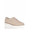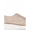 Boty s broque dírkováním v oxford stylu z béžové lakované kůže jsou absolutně chic! Polobotky stojí na výrazné trendy bílé podrážce, která se mírně od paty svažuje. Dodají vám tak extra centimetry tím nejpohodlnějším způsobem. Kousek, který unosíte k eleganím kalhotám i slim modrým džínům. Kožená podšívka zajišťuje maximální komfort při nošení. Mají praktické šněrování a dvojitou měkkou koženou stélku.