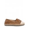 Fantastické hnědé děrované espadrilky! Děrování nejen že dovolí nohám krásně dýchat, ale zároveň vypadá naprosto božsky. Espadrilky stoji na tradiční silné lněným provazem ovázané podrážce, která odfiltruje veškeré nerovnosti země při chůzi. Velmi snadno se nazouvají, jsou krásně lehké, pohodlné a díky odvětrávání dírkami o nich na noze nebudete téměř vědět. A přesto v nich budete vypadat báječně.