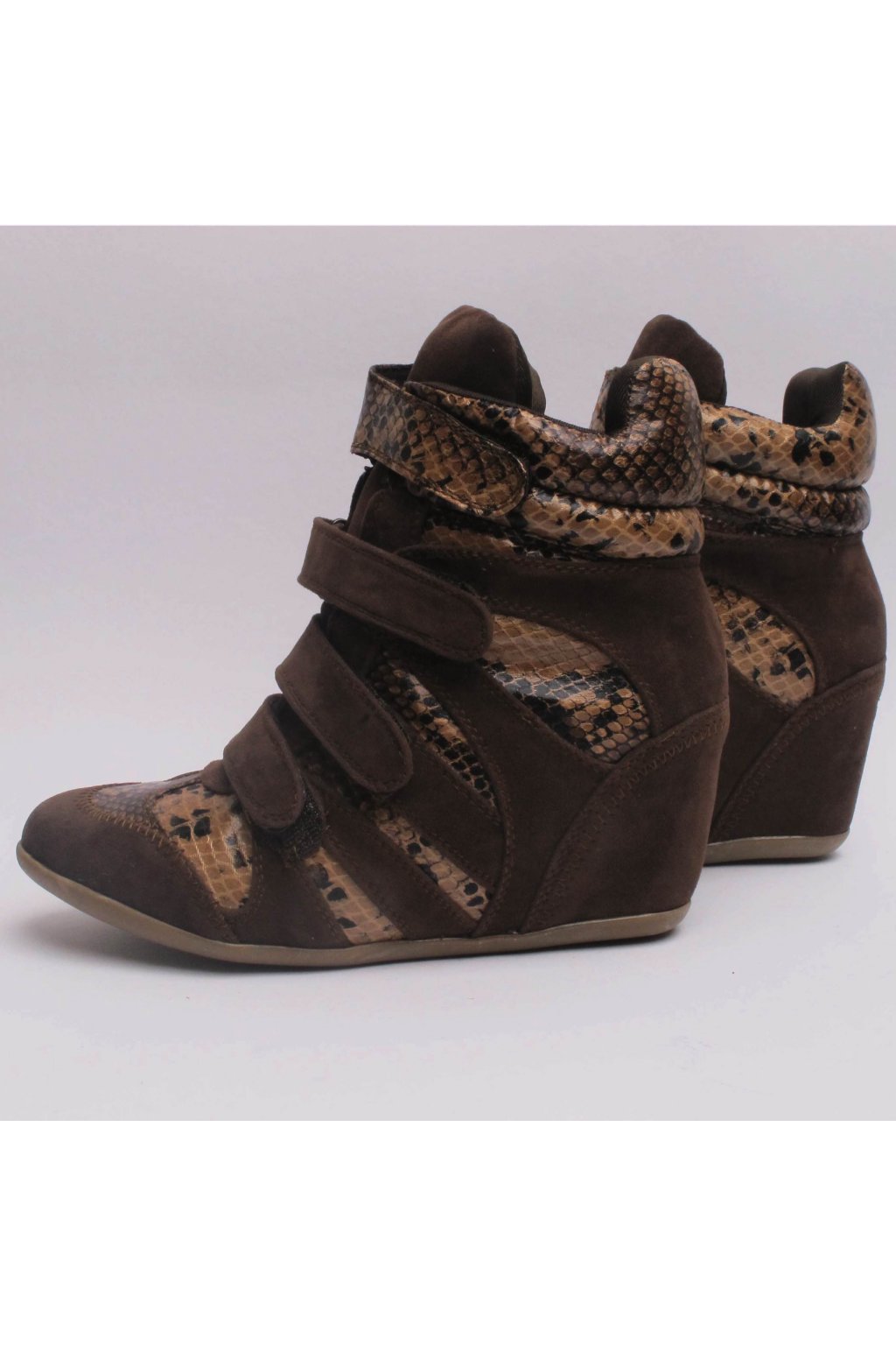 Tyto jsou potažené jemný umělým semišem a trendy imitací hadí kůže. Perfektně se hodí k džínům a nejedno oko se za nimi ohlédne. O pohodlné nazouvání se postarají čtyři suché zipy.